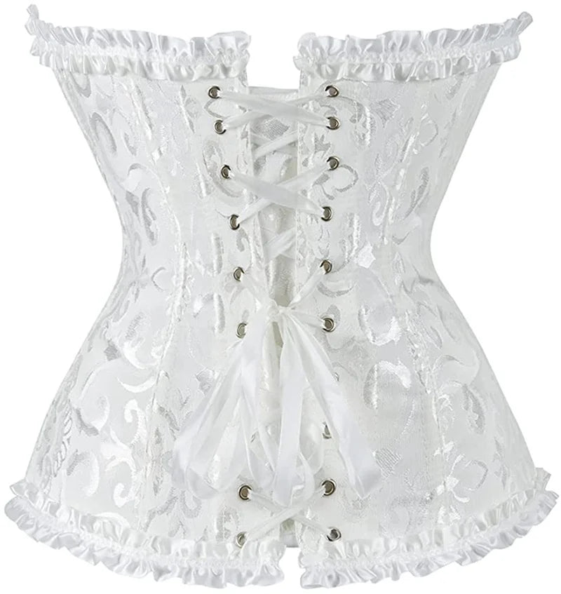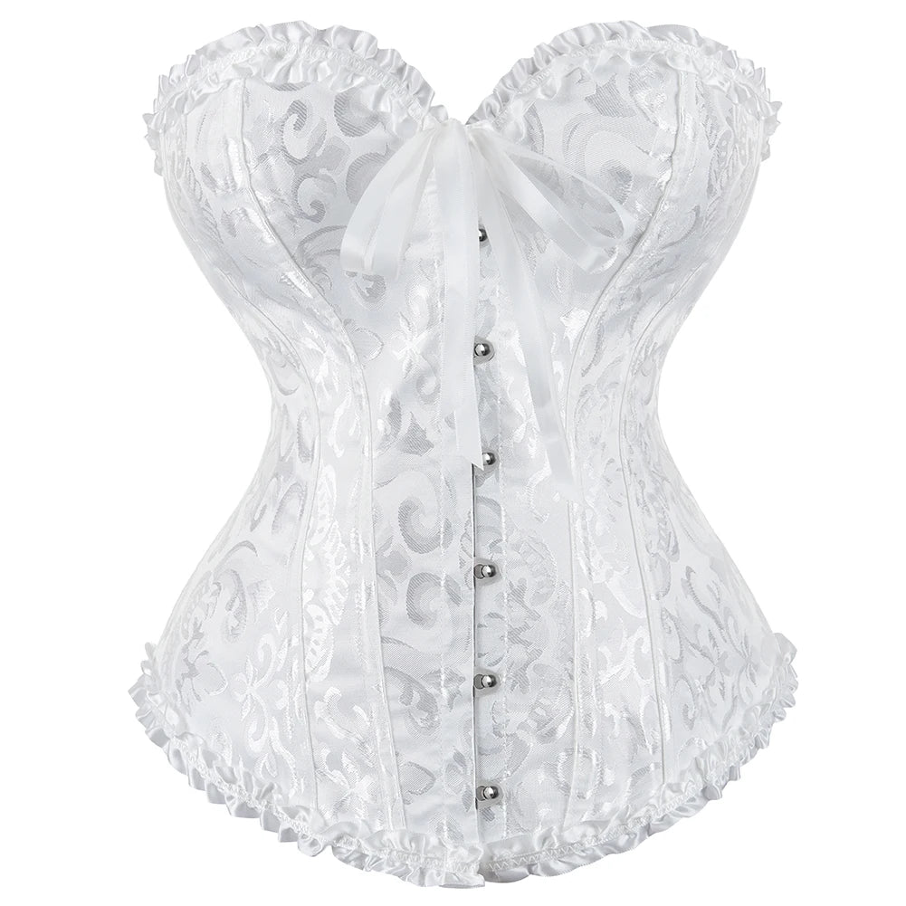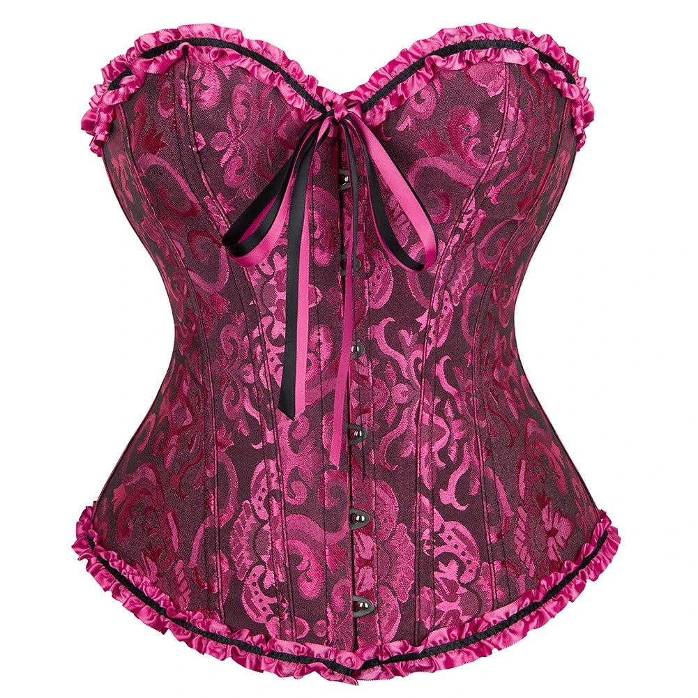Meet "Aurora," a whimsical blend of elegance and charm. This Lolita-style corset features a captivating print and delicate appliques, crafted from a luxurious mix of polyester, LYCRA, and Spandex. The comfortable push-up design embraces curves, and with colors ranging from classic black and red to white, green, blue, khaki, and purple, "Aurora" is your go-to for versatile vintage chic. Elevate your style effortlessly with this corset top that tells a tale of timeless allure.