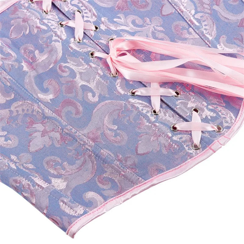 Unleash your inner elegance with Sapphira, a stunning blue corset top designed to captivate. Made from a luxurious blend of cotton and polyester, this bustier offers both comfort and sophistication, making it perfect for everyday wear or statement-making occasions. Featuring delicate lace details and a brocade-inspired print, Sapphira embodies a perfect balance of gothic allure and feminine grace.