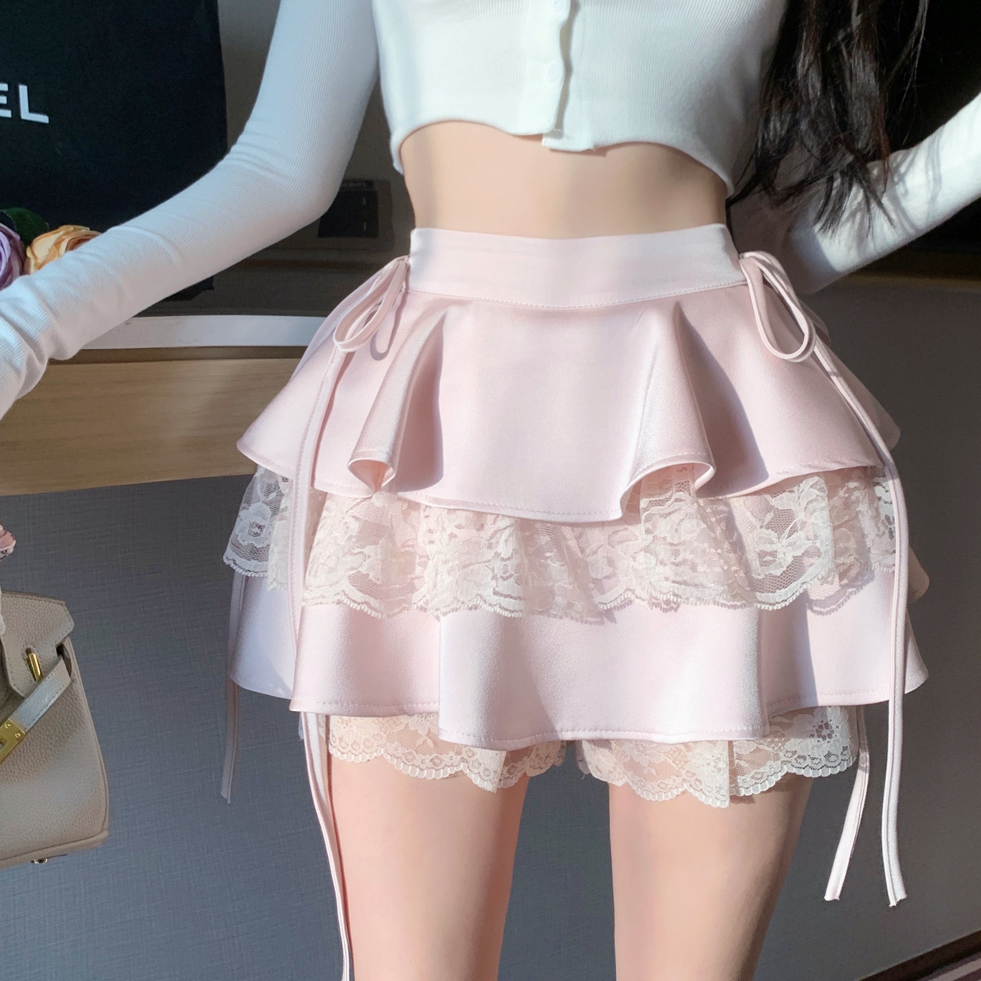 One of the highlights of this skirt is its lace-up decoration, which adds a delightful and intricate detail to the overall design. The lace-up feature not only enhances the visual appeal of the skirt but also allows you to adjust the fit to your liking, ensuring maximum comfort.
