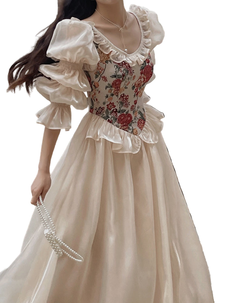 The empire waistline of this dress accentuates your figure while providing a comfortable and flattering fit. Its regular type design ensures a versatile look that can be dressed up or down effortlessly. The puff sleeves, with their full length, add a whimsical element to the overall silhouette, creating a sense of elegance and playfulness.