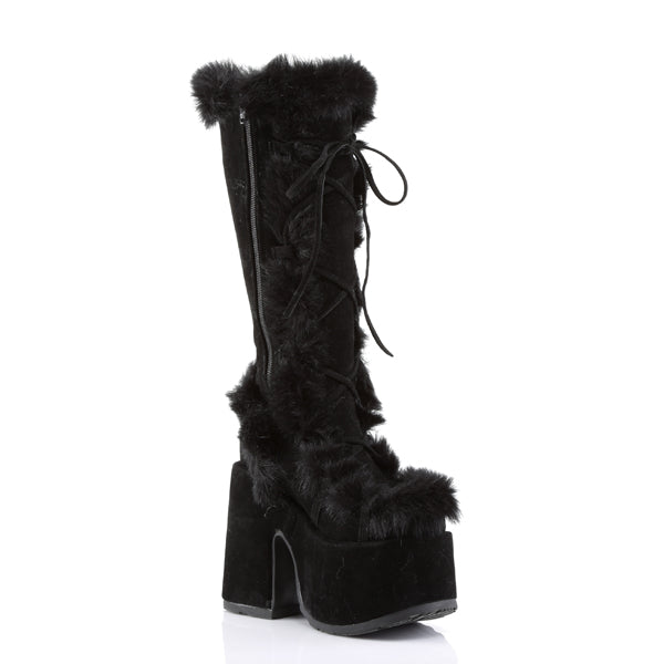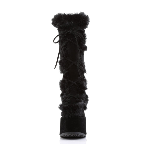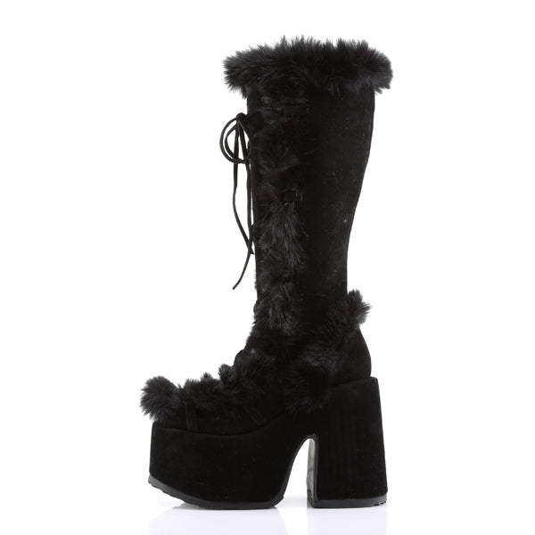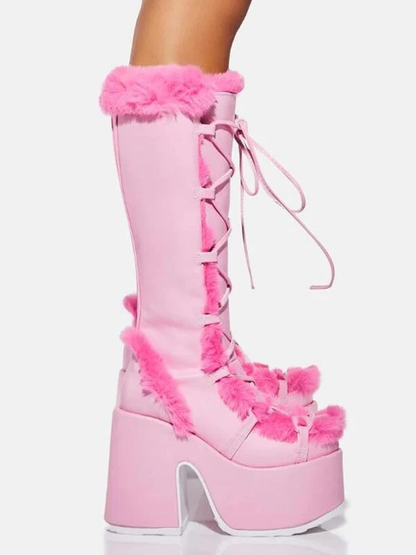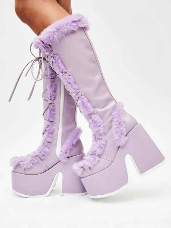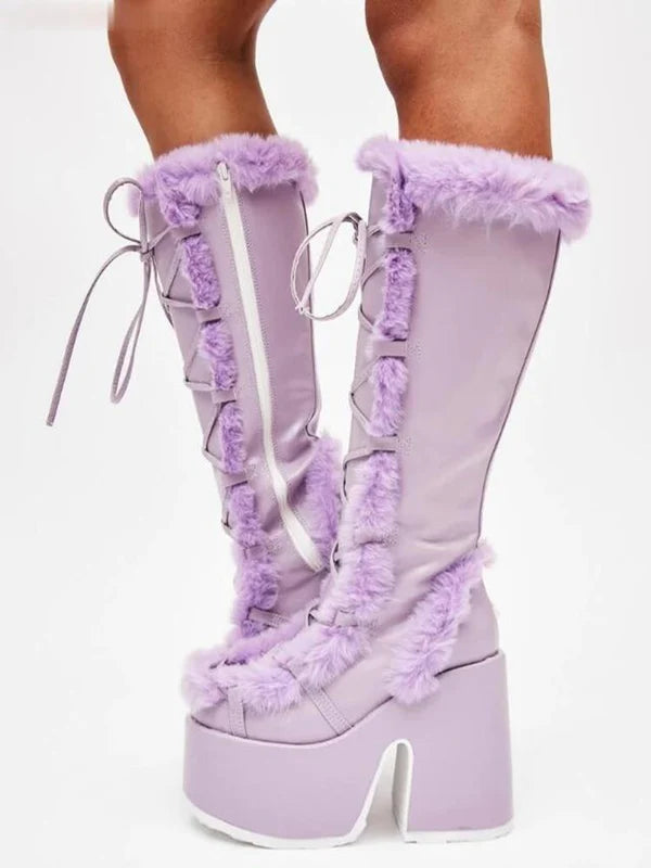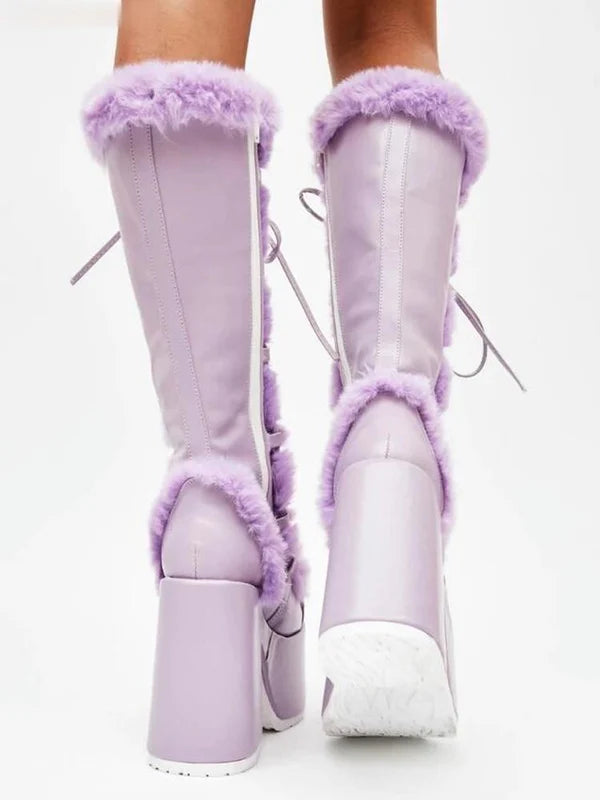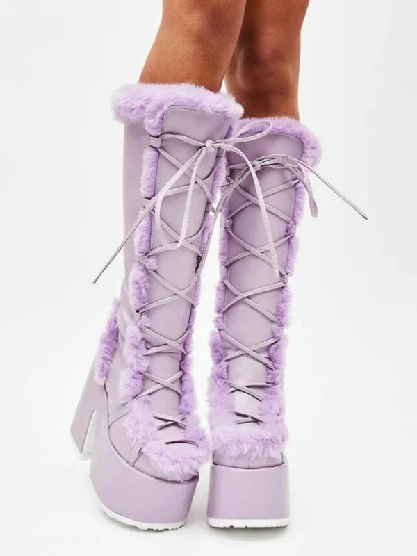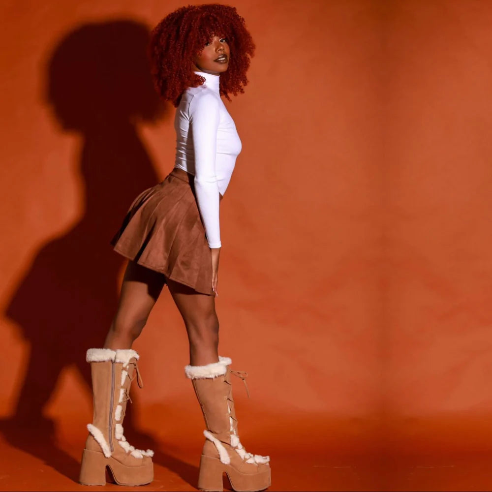 Stay warm and stylish with Furvana, the ultimate snow boots for winter! Designed with plush suede and a cozy lining, these mid-calf boots feature a durable rubber outsole and platform heels for added height and non-slip traction. The cross-tied laces add a chic touch, while the round toe and waterproof design ensure comfort and practicality. Perfect for embracing the season with elegance and warmth.