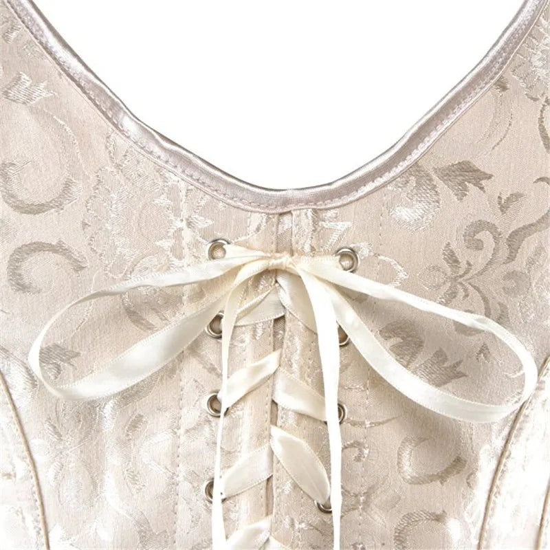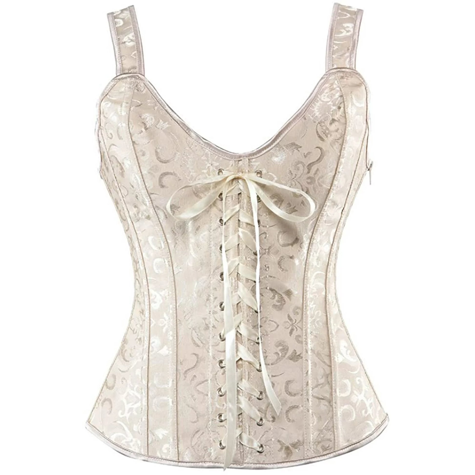 Introducing Glorious– a perfect blend of style and comfort. Made from polyester, LYCRA, and spandex, this everyday corset in classic white, black, and khaki enhances your silhouette. Featuring adjustable shoulder straps, it's a lolita-inspired, plus-size vest with a waist-cinching zip for easy wear. Elevate your style effortlessly with this statement piece.