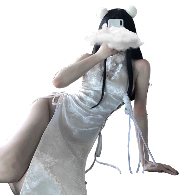 Introducing Hasmal, a seductive blend of tradition and allure. This Palace Retro High Slit Cheongsam features elegant hollow lace detailing, perfect for adding a touch of mystery to any evening.