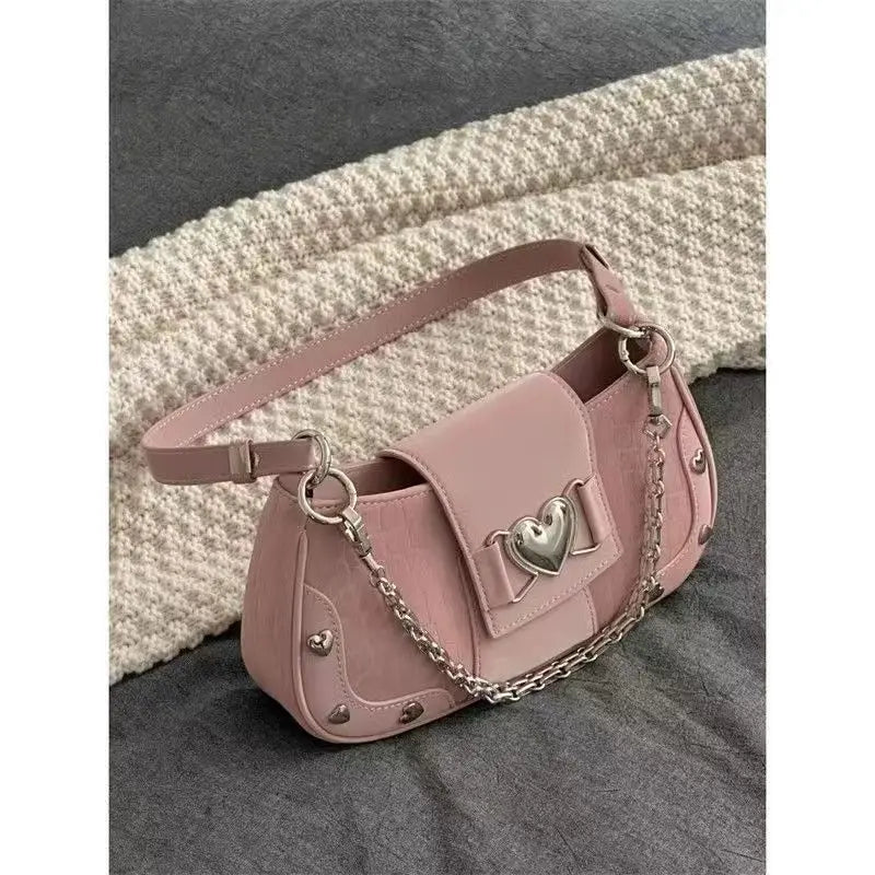 Its glossy heart detail, soft pink finish, and silver chain strap make it your go-to for every coquette, soft girl, or baddie aesthetic.