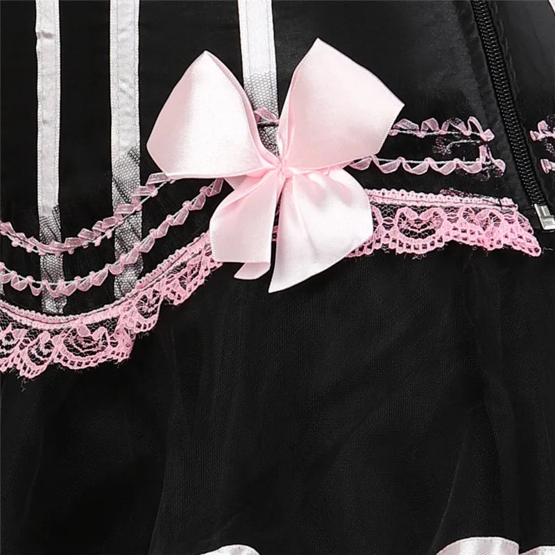 Lolita is a whimsical masterpiece that effortlessly fuses sophistication with a hint of playfulness. Enveloped in enchanting stripes, it takes center stage in the world of fashion. Crafted from a luxurious blend of LYCRA and Spandex, Lolita ensures both comfort and allure. The delicate lace detailing adds a touch of romance to this sexy satin overbust corset, transforming it into a must-have for those who seek a perfect balance between elegance and whimsy. With its unique striped pattern and impeccable design, this beauty invites you to embrace the charm of Lolita style. Revel in the artistry of fashion as you adorn yourself in this captivating bustier, where every lace-up detail tells a story of timeless grace and playful allure.