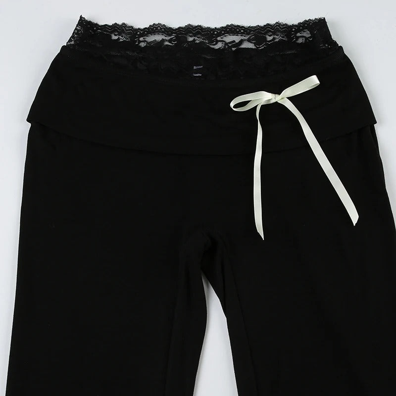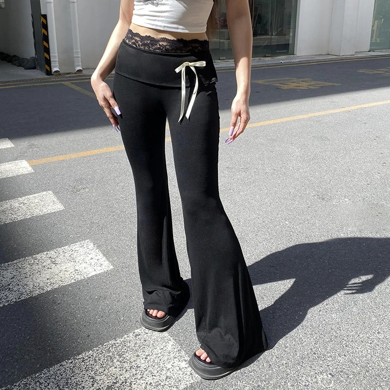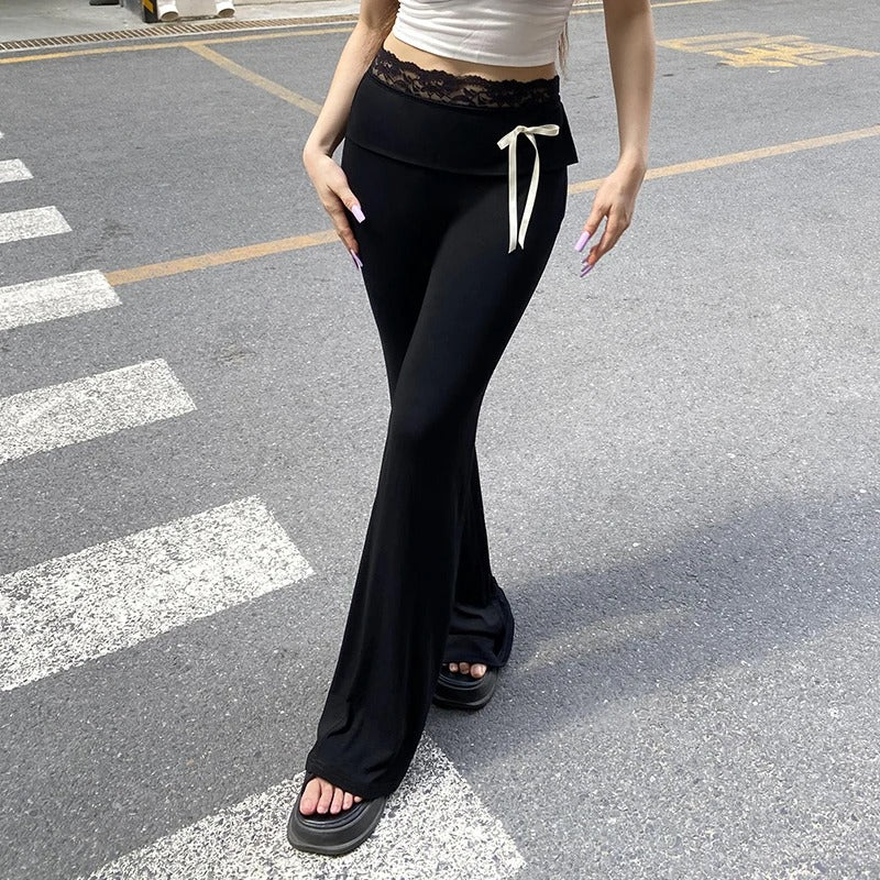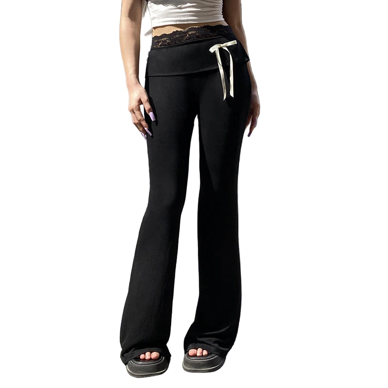 Step up your casual wardrobe with Noirbow. These chic pants combine comfort and style with delicate lace accents and playful bow details, adding a touch of elegance to a casual essential. Crafted from a soft polyester-spandex blend, they provide a slight stretch and a flattering skinny fit. The boot-cut silhouette and mid-waist design create a timeless yet trendy look, perfect for any season.