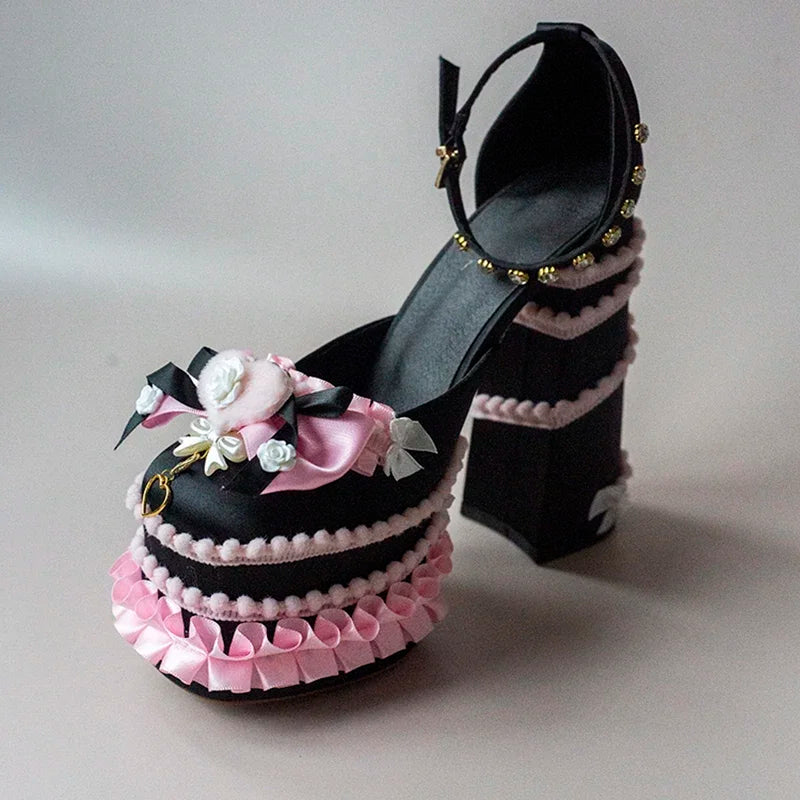 Elevate your look with the Rufflette Heels, blending whimsical charm with bold style. Featuring super high square heels, a modern square toe, and delicate ruffle details, these slingback pumps are perfect for parties or Lolita-inspired outfits. Crafted from durable PU with a rubber outsole, they offer both comfort and stability. Add a touch of magic to your wardrobe with these enchanting heels!