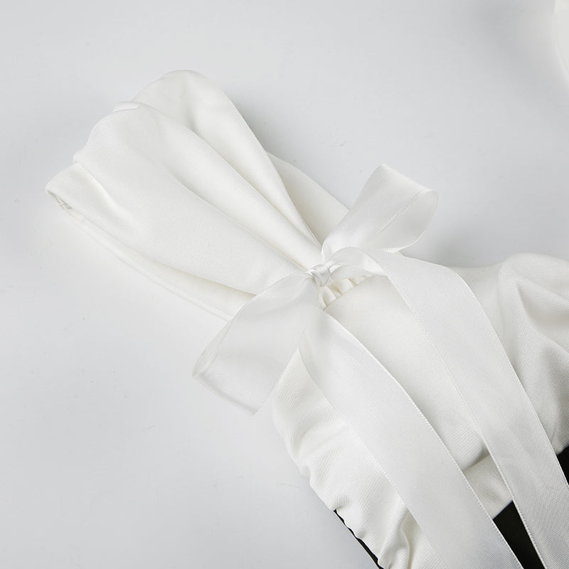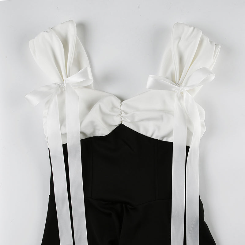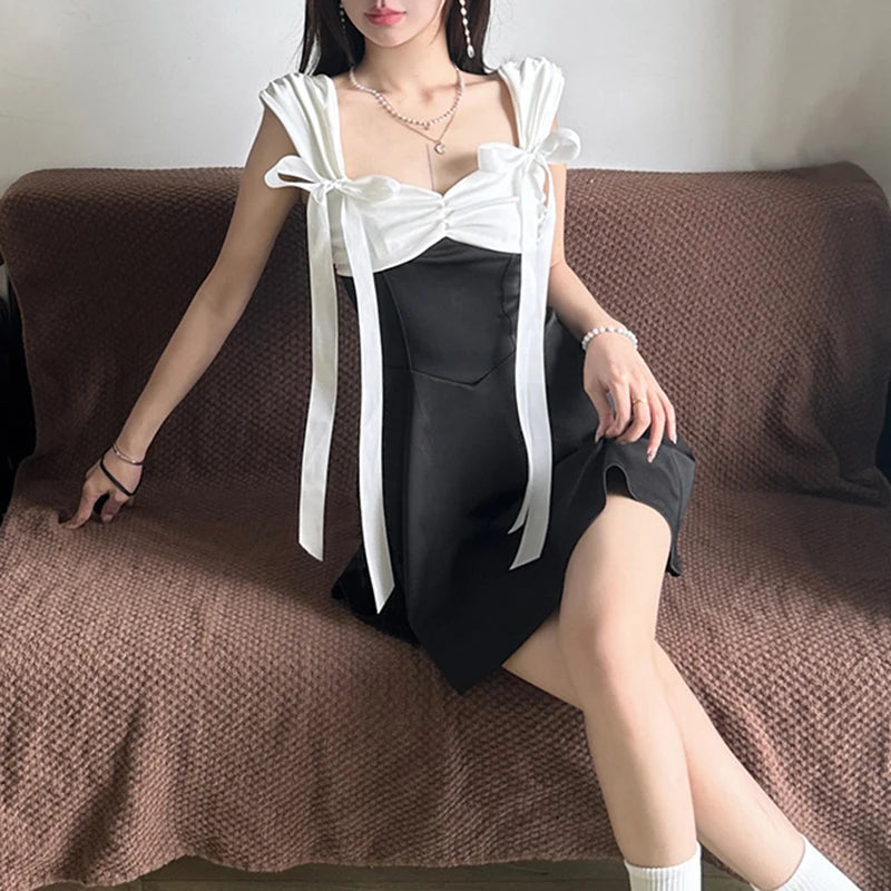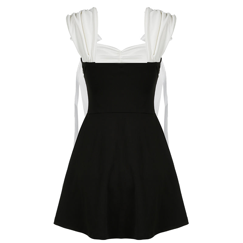 The Satinelle Dress blends elegance with charm, featuring a sweet A-line silhouette and a playful mini length. Its high-stretch polyester-spandex fabric ensures a flattering, comfortable fit, while the delicate spaghetti straps and V-neckline exude femininity. Adorned with a bow and patchwork details, this dress is perfect for versatile styling, whether for casual outings or special occasions. A timeless piece for all seasons, designed to keep you effortlessly chic.